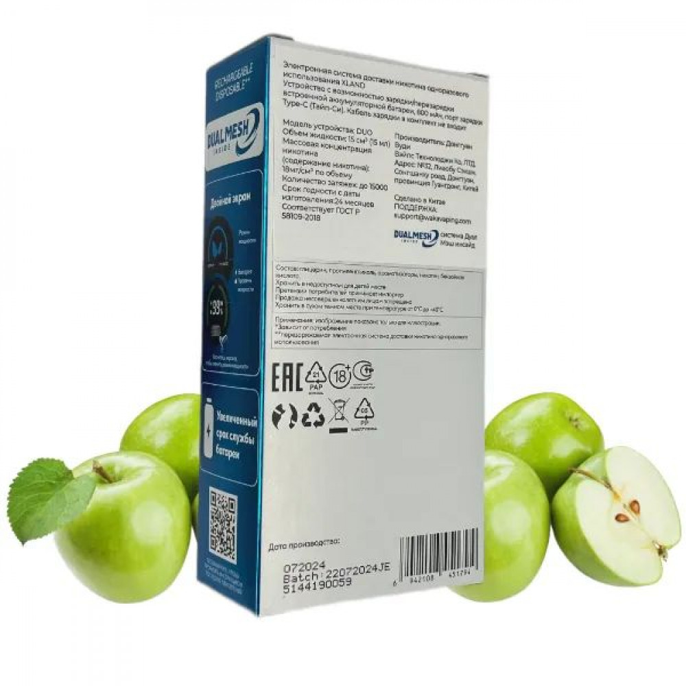 | ИспарительDual Mesh | Количество затяжек, шт15000 | ЛинейкаWAKA XLAND |